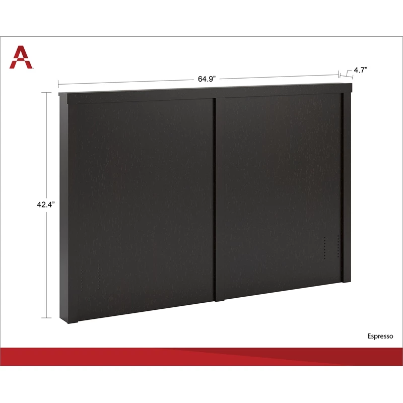 Add a touch of modern design to your bed with this transitional headboard from Ameriwood. Sleek and streamlined, the Ameriwood Hollow Core transitional Headboard is a perfect fit in today’s ultra-chic interiors, as well as casual and transitional spaces. Dressed in a dark Espresso finish, the headboard includes an attachment to fit both full and queen-size beds. Clean, straight lines give the Ameriwood Hollow Core Transitional Headboard its unmistakably modern looks, which coordinate easily with a wide variety of other decorating styles, including more traditional interiors. In the master suite, guest rooms or even your child’s room, this handsome headboard makes any bedroom more complete and inviting. For a more coordinated space, the headboard can be combined with Ameriwood’s Hollow Core Bedroom Collection (sold separately), including a dresser (5551012PCOM) and nightstand (5552012PCOM). Assembly Required.