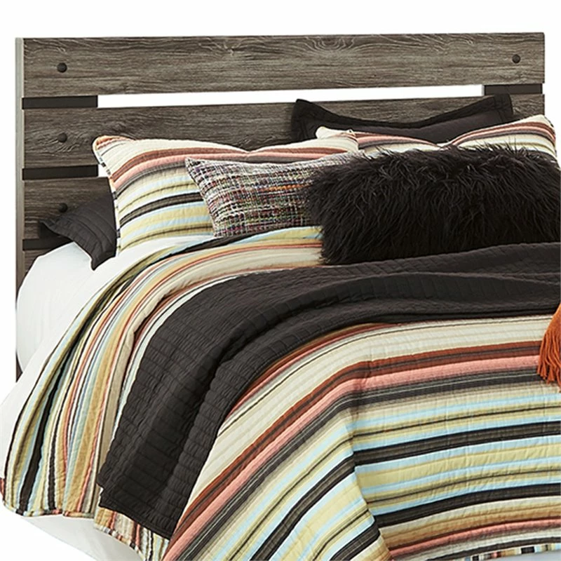 As much as you love escaping to the country, you’re equally drawn to the city. No wonder the Cazenfeld queen panel headboard fits you so well. Sporting an easy-on-the-eyes finish inspired by weathered barn wood, Cazenfeld is sure to please with an uptown look and a down-to-earth sensibility. Open slat headboard with rivet accents gives the urban pastoral aesthetic an added punch of character.