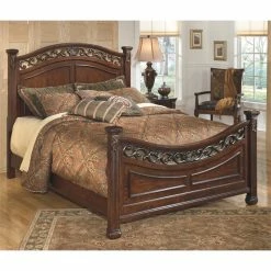 With the fluted pilasters beautifully adorned with leaf form corbels and cast foliage filigree bathed in a warm metallic color finish scrolling across the bed and mirror, the rich elegant design of the “Leahlyn” bedroom collection flawless captures the true essence of Old World styled furniture.