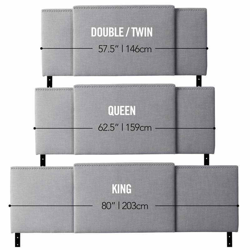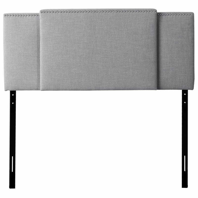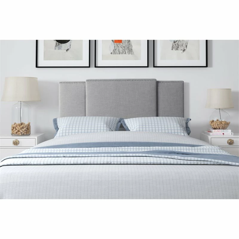 Create a designer look in your bedroom with this unique padded light gray fabric upholstered headboard. The versatile expanding panel feature gives you the flexibility to accommodate a double, queen or king size bed, making it simple to create a luxurious focal point in any bedroom. This beautifully designed headboard is equipped with standard holes on the legs, allowing it to attach to most standard bed frames.