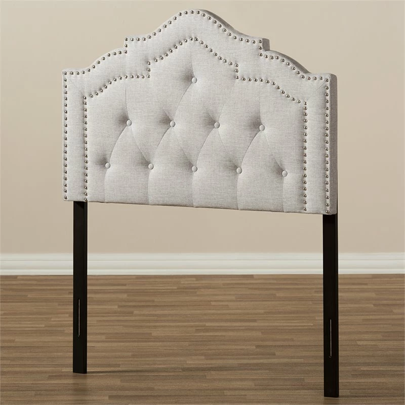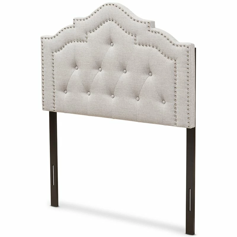 Clean, classic and graceful, the Edith fabric upholstered headboard will imbue your sleep space with a calming energy. Featuring grayish beige polyester fabric upholstery with high density foam, the Edith is an up to-date design and will bring ultimate comfort to your sleeping space. The mounting wood posts in solid rubberwood provide adjustable levels and additionally, the double trimmed nail heads give a touch of glamour. Curvaceous outlined, the Edith is button-tufted for an updated classic look.