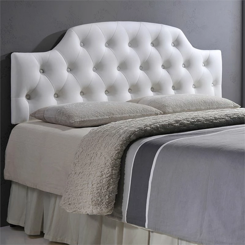 Clean, classic and graceful, the Morris Upholstered Headboard will imbue your bedroom with a calming energy. Fully upholstered in white faux leather that’s durable and easy to maintain, the Morris headboard is practical for every’s use. The Morris features quality hardwood and plywood for stability and strength. The curved shape cushioned headboard will standout in your bedroom with its button-tufted design. Supporting the headboard is the adjustable legs on two sides with pre-drilled holes built in for your preferred height matching the height of your box spring and mattress. The classic look of the Morris will work well with all of your bedding ensembles. Built in Malaysia, the headboard requires assembly.