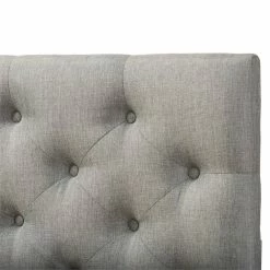 Straight lines and button-back detailing offers your sleep space a plush symmetry with the Viviana upholstered headboard. Impart a unique elegance into your bedroom interior with this classic piece of furniture. The Viviana is constructed of quality hardwood frame and is cushioned with high density foam for softness and shape. For an ultra elegant look, the gray polyester fabric upholstered headboard is button-tufted to create the diamond shaped design. The headboard sits between the wall and the ensemble frame, attaching not to the bed base but to the legs, for stability. The leg supports are invisible once set up and can be adjusted to suit the height of your ensemble for convenience.