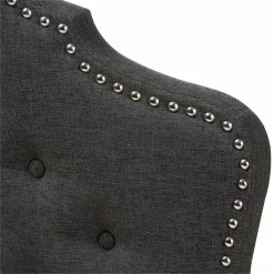 Complete your bedroom interior with the fabric upholstered headboard. Constructed of solid rubberwood and MDF, the headboard is upholstered in durable dark gray fabric. Featuring a curvaceous design with silver nail heads trim and button-tufting design for a glamour look, the headboard offers a touch of modern sophistication. The mounting wood post is made from quality rubberwood for stability and strength. Cushioned headboard provides softness and shape, allowing you to rest comfortably.