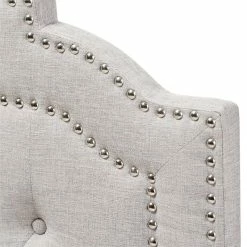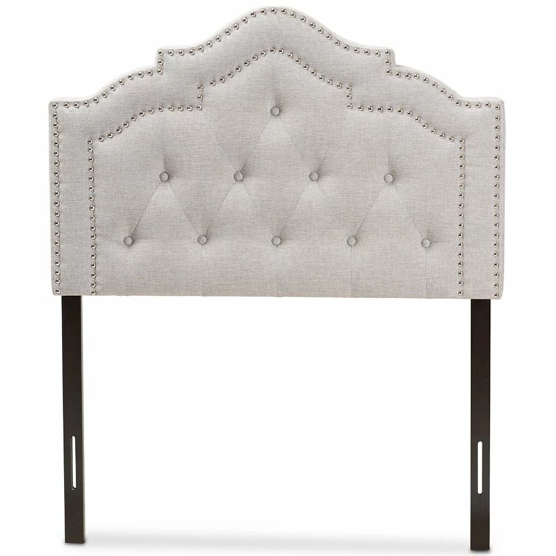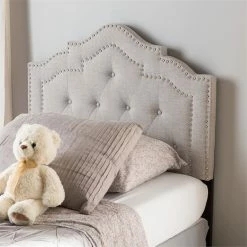 Clean, classic and graceful, the Bowery Hill fabric upholstered headboard will imbue your sleep space with a calming energy. Featuring grayish beige polyester fabric upholstery with high density foam, the headboard is an up to-date design and will bring ultimate comfort to your sleeping space. The mounting wood posts in solid rubberwood provide adjustable levels and additionally, the double trimmed nail heads give a touch of glamour. Curvaceous outlined, the headboard is button-tufted for an updated classic look.