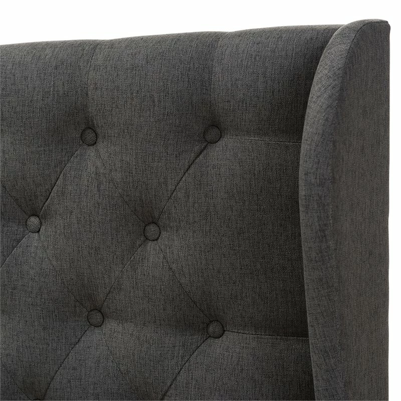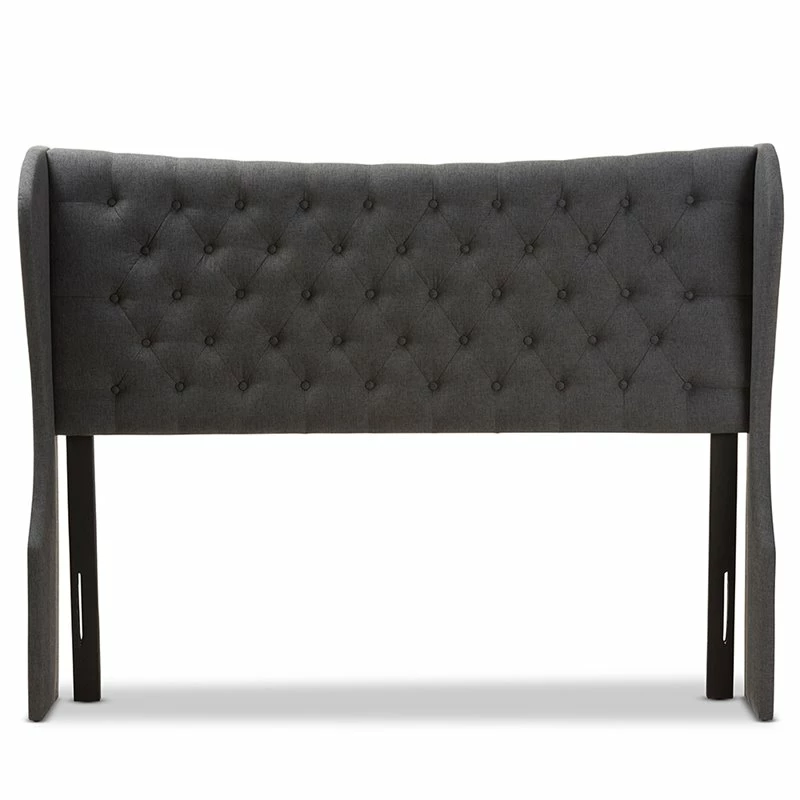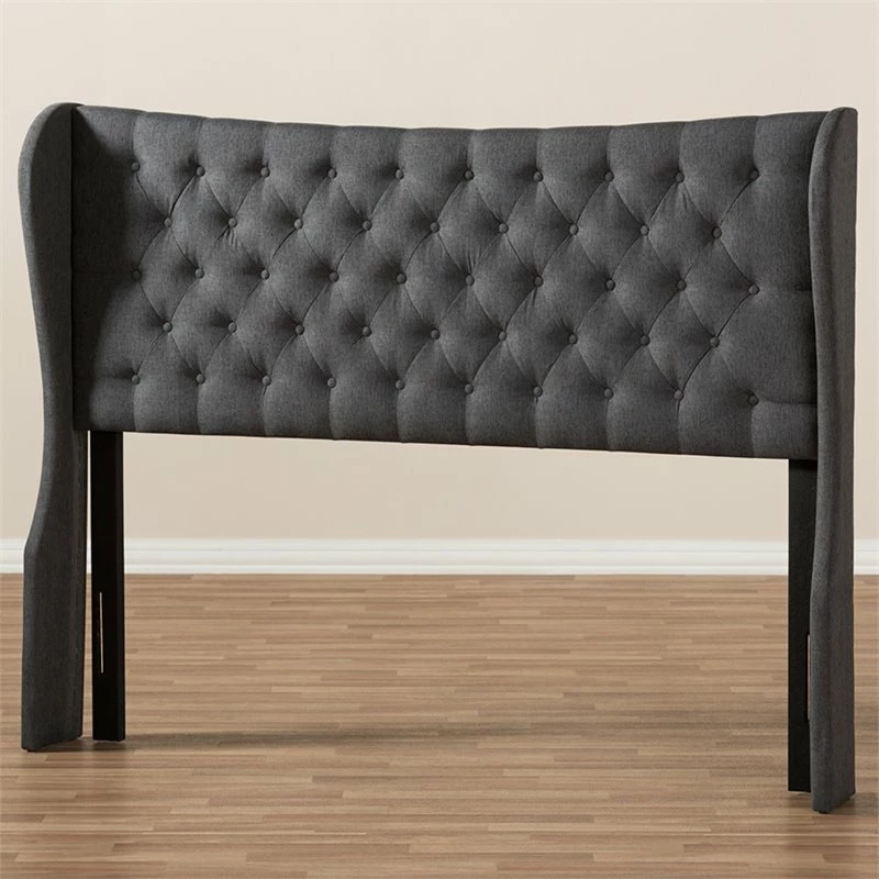 Complete the look of your sleep space with a touch of classic, textured style with the fabric upholstered headboard. Constructed of solid rubber wood frame and plywood for long-lasting strength and structural support, the headboard is built to last. Soft polyester fabric over the foam filled headboard offering a soft finish for plush and comfortable style. Featuring button tufting detailing and curved wings that follow down to base, the headboard frames your sleep space in classic, upholstered style without renewing your existing bed set-up. Made in Malaysia, this full size headboard requires assembly.