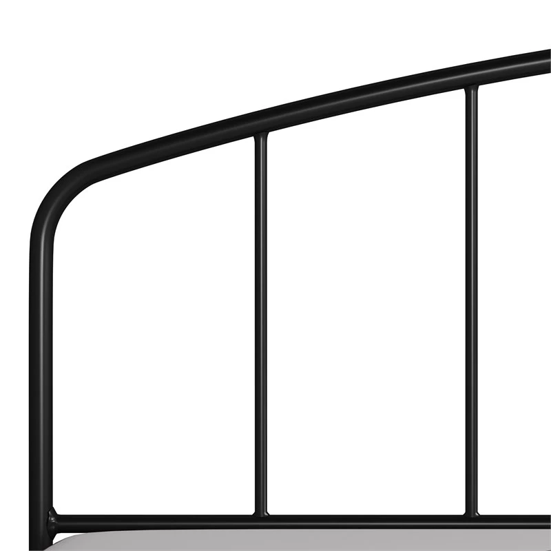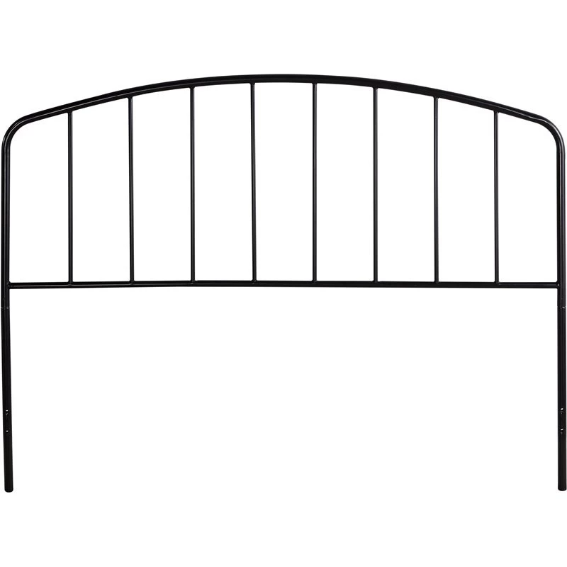 With simple lines and an open, airy design this full/queen metal headboard with an arched spindle design is the perfect addition to your bedroom. The gently arched headboard with modest spindle fittings create a sleek profile for an understated style. The classic metal frame is accented by a shiny smooth black finish. Ships in one box; includes headboard only. Mattress and box spring required, not included. Assembly required.