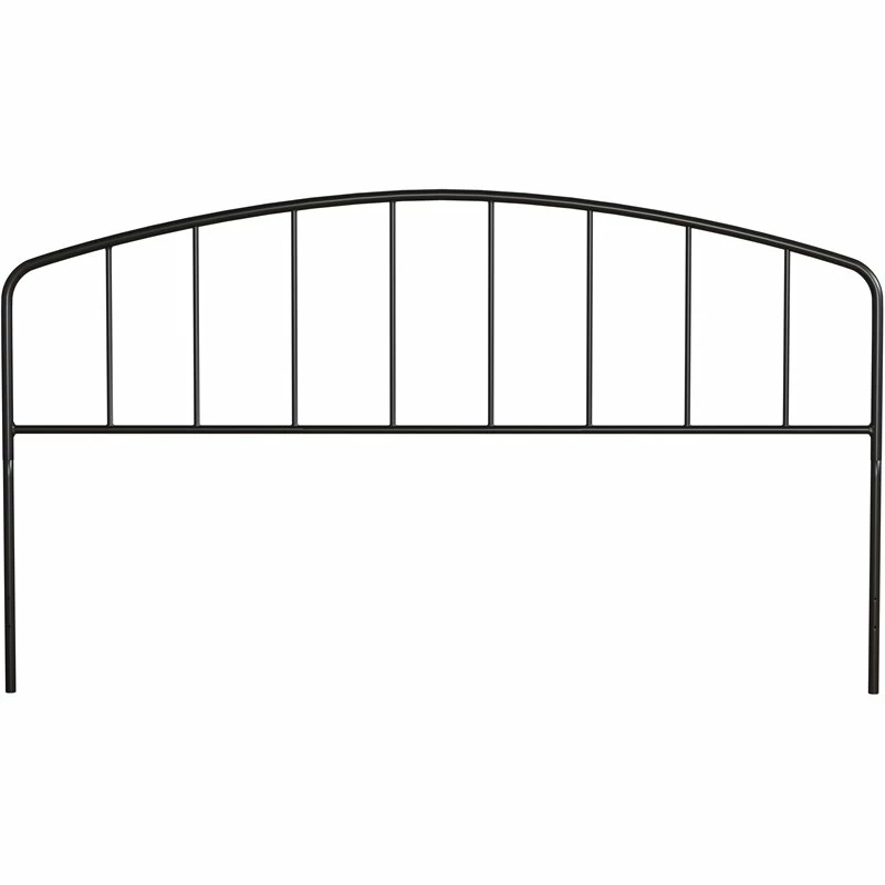 With simple lines and an open, airy design this king metal headboard with an arched spindle design is the perfect addition to your bedroom. The gently arched headboard with modest spindle fittings create a sleek profile for an understated style. The classic metal frame is accented by a shiny smooth black finish. Ships in one box; includes headboard only. Mattress and box spring required, not included. Assembly required.