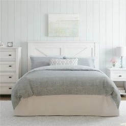 This queen headboard is the perfect bedroom addition to enhance your home’s country style. The sturdy laminated MDF and particleboard construction has a white wood grain finish.