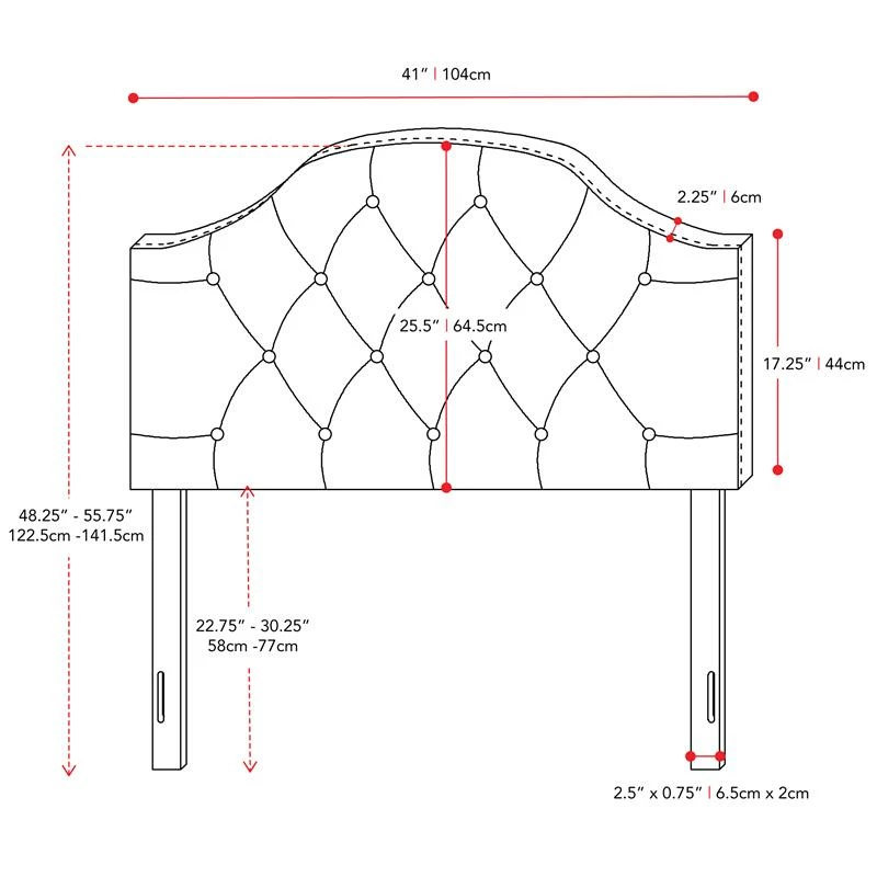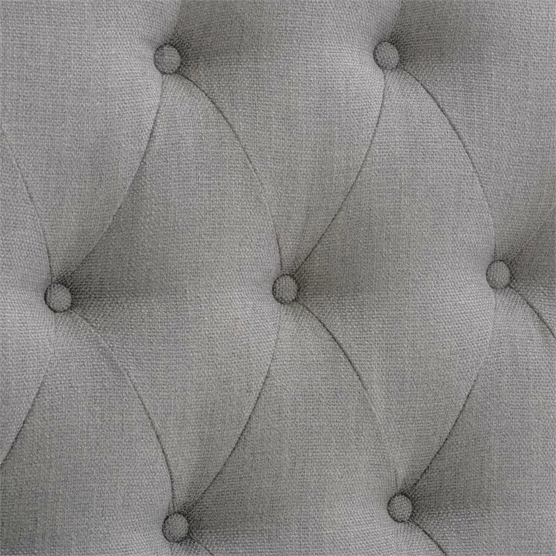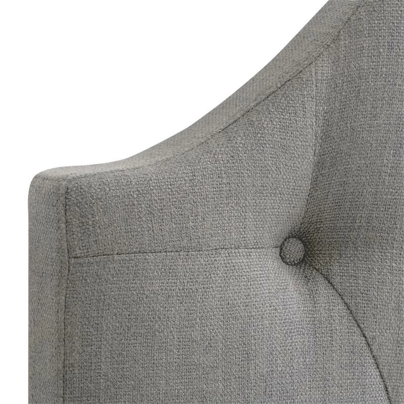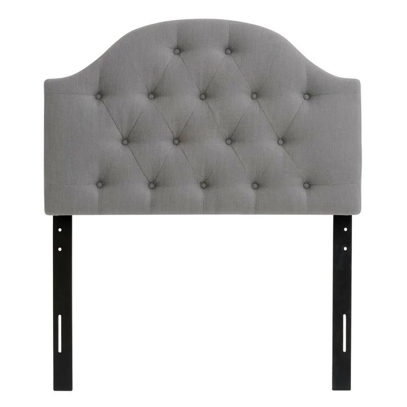 Complete your bedroom with this beautiful, foam padded soft gray upholstered headboard. A diamond button tufted design with soft lines and a smooth arched silhouette that will be sure to impress. Beautifully upholstered in a soft fabric, this versatile, low-profile headboard is equipped with easy-to-adjust legs to accommodate your bed and frame.