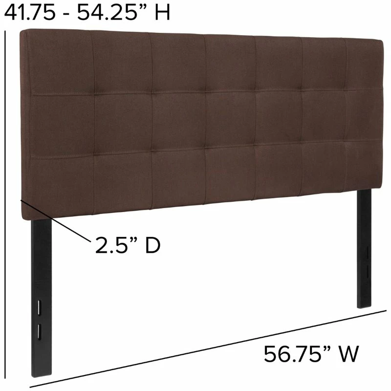 If you like reading or using your tablet or laptop in bed, you need a headboard to provide extra support. A headboard gives your room a very personal touch and allows you to show off your style. This gorgeous dark brown full headboard features button tufting and a diamond stitch pattern design, fabric upholstery, and includes adjustable metal bed rail slots. The slim panel will make your room feel more spacious. Having just a headboard will provide you with floor space and makes it easy to make up the bed. Whether you’re updating your master bedroom, guest room or furnishing your first apartment or home, this headboard will give a fresh, on-trend look to your space.