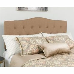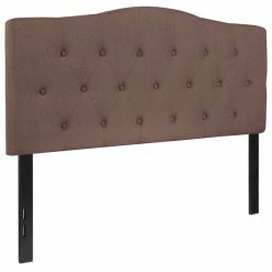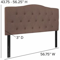 If you like reading or using your tablet or laptop in bed, you need a headboard to provide extra support. A headboard gives your room a very personal touch and allows you to show off your style. This gorgeous camel full headboard features button tufting and a diamond stitch pattern design, fabric upholstery, and includes adjustable metal bed rail slots. The slim panel will make your room feel more spacious. Having just a headboard will provide you with floor space and makes it easy to make up the bed. Whether you’re updating your master bedroom, guest room or furnishing your first apartment or home, this headboard will give a fresh, on-trend look to your space.