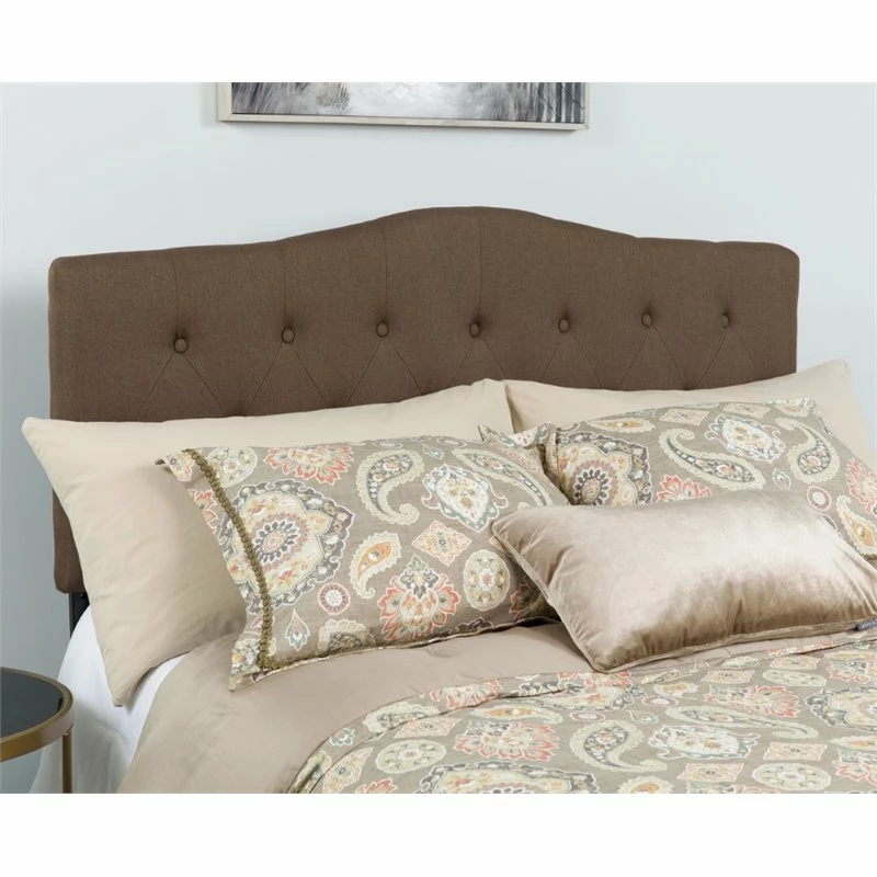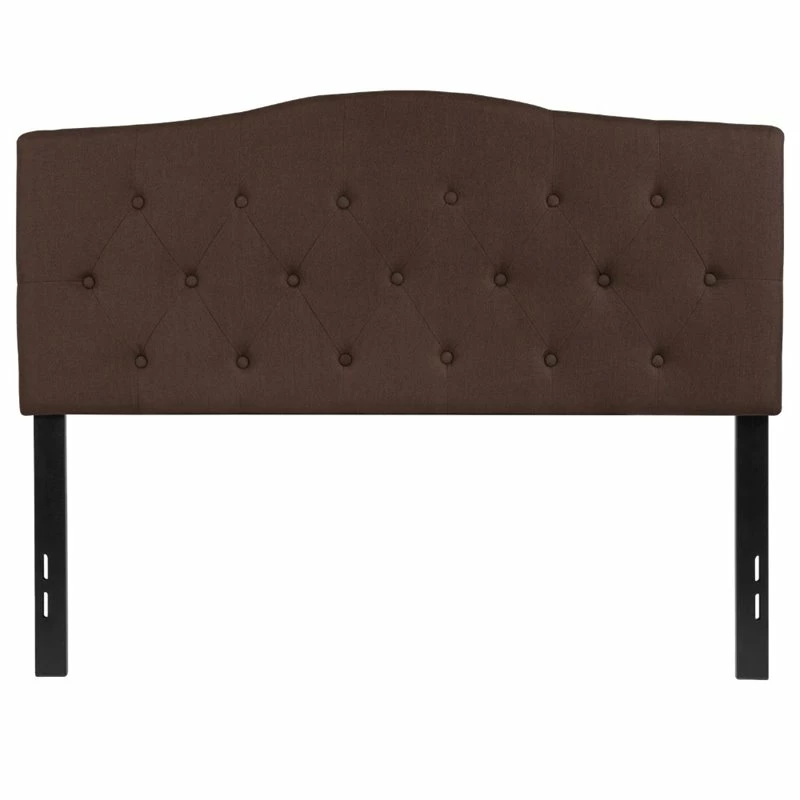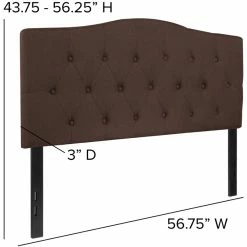 If you like reading or using your tablet or laptop in bed, you need a headboard to provide extra support. A headboard gives your room a very personal touch and allows you to show off your style. This gorgeous dark brown full headboard features button tufting and a diamond stitch pattern design, fabric upholstery, and includes adjustable metal bed rail slots. The slim panel will make your room feel more spacious. Having just a headboard will provide you with floor space and makes it easy to make up the bed. Whether you’re updating your master bedroom, guest room or furnishing your first apartment or home, this headboard will give a fresh, on-trend look to your space.