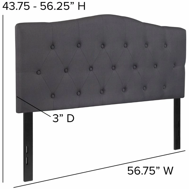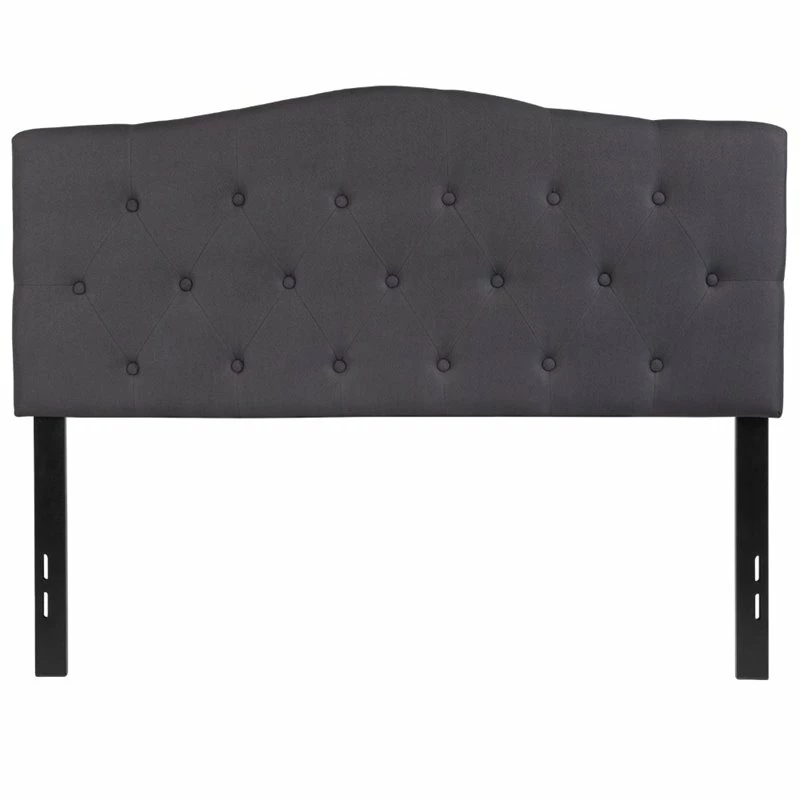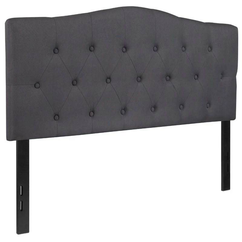 If you like reading or using your tablet or laptop in bed, you need a headboard to provide extra support. A headboard gives your room a very personal touch and allows you to show off your style. This gorgeous dark gray full headboard features button tufting and a diamond stitch pattern design, fabric upholstery, and includes adjustable metal bed rail slots. The slim panel will make your room feel more spacious. Having just a headboard will provide you with floor space and makes it easy to make up the bed. Whether you’re updating your master bedroom, guest room or furnishing your first apartment or home, this headboard will give a fresh, on-trend look to your space.