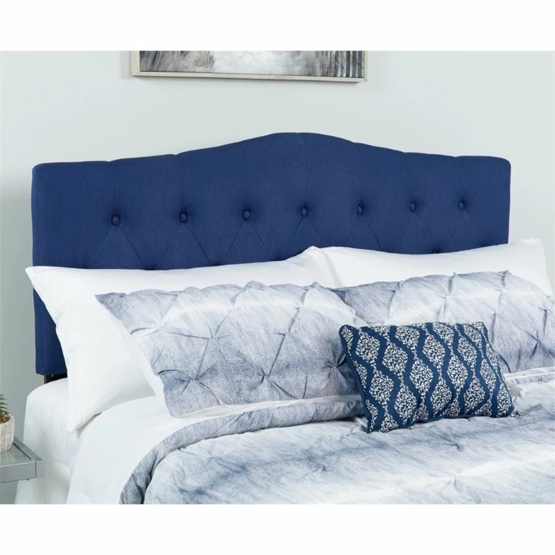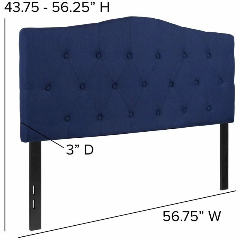 If you like reading or using your tablet or laptop in bed, you need a headboard to provide extra support. A headboard gives your room a very personal touch and allows you to show off your style. This gorgeous navy full headboard features button tufting and a diamond stitch pattern design, fabric upholstery, and includes adjustable metal bed rail slots. The slim panel will make your room feel more spacious. Having just a headboard will provide you with floor space and makes it easy to make up the bed. Whether you’re updating your master bedroom, guest room or furnishing your first apartment or home, this headboard will give a fresh, on-trend look to your space.