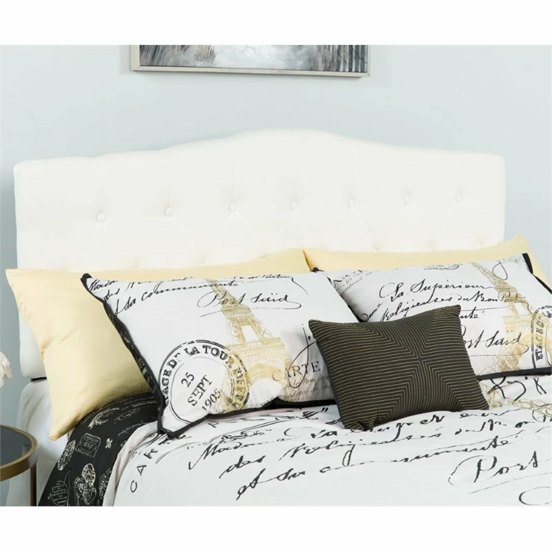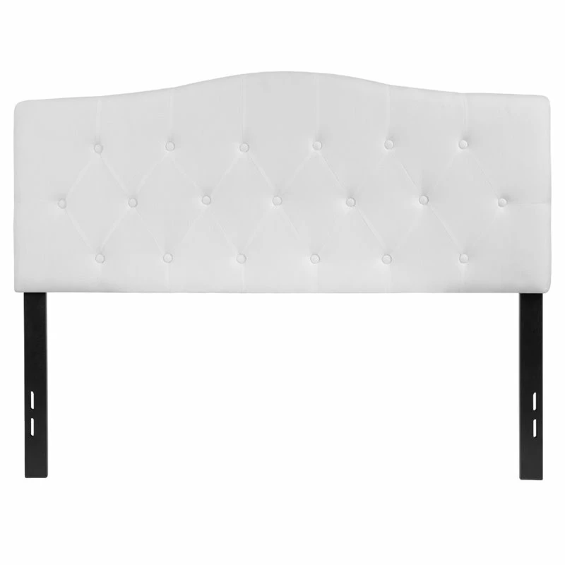 If you like reading or using your tablet or laptop in bed, you need a headboard to provide extra support. A headboard gives your room a very personal touch and allows you to show off your style. This gorgeous white full headboard features button tufting and a diamond stitch pattern design, fabric upholstery, and includes adjustable metal bed rail slots. The slim panel will make your room feel more spacious. Having just a headboard will provide you with floor space and makes it easy to make up the bed. Whether you’re updating your master bedroom, guest room or furnishing your first apartment or home, this headboard will give a fresh, on-trend look to your space.