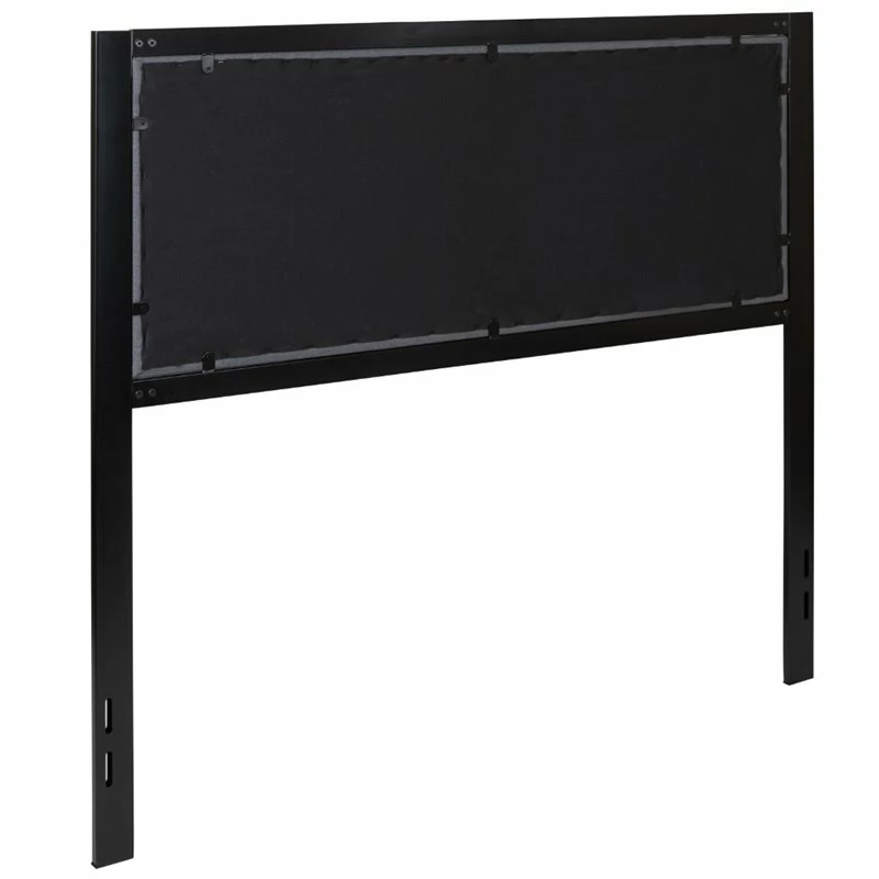 Make your bedroom appear larger with this upholstered panel headboard that is accented by a metal frame with adjustable bed rail slots. After a long day get in the bed without complication by not having to go around the entire frame when you’re trying to get in bed quickly. For those who hate or love to make-up their bed it is much easier to do without a bulky footboard in the way. If you have a longer physique you will appreciate being able to spread out without hitting your feet against a footboard. Add the final touches to your bedroom or guest room with this alluring centerpiece that will complement your contemporary or traditional rooms.