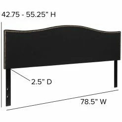 If you like reading or using your tablet or laptop in bed, you need a headboard to provide extra support. A headboard gives your room a very personal touch and allows you to show off your style. This gorgeous black king headboard features brass nailhead trim, fabric upholstery, and includes adjustable metal bed rail slots. The slim panel will make your room feel more spacious. Having just a headboard will provide you with floor space and makes it easy to make up the bed. Whether you’re updating your master bedroom, guest room or furnishing your first apartment or home, this headboard will give a fresh, on-trend look to your space.