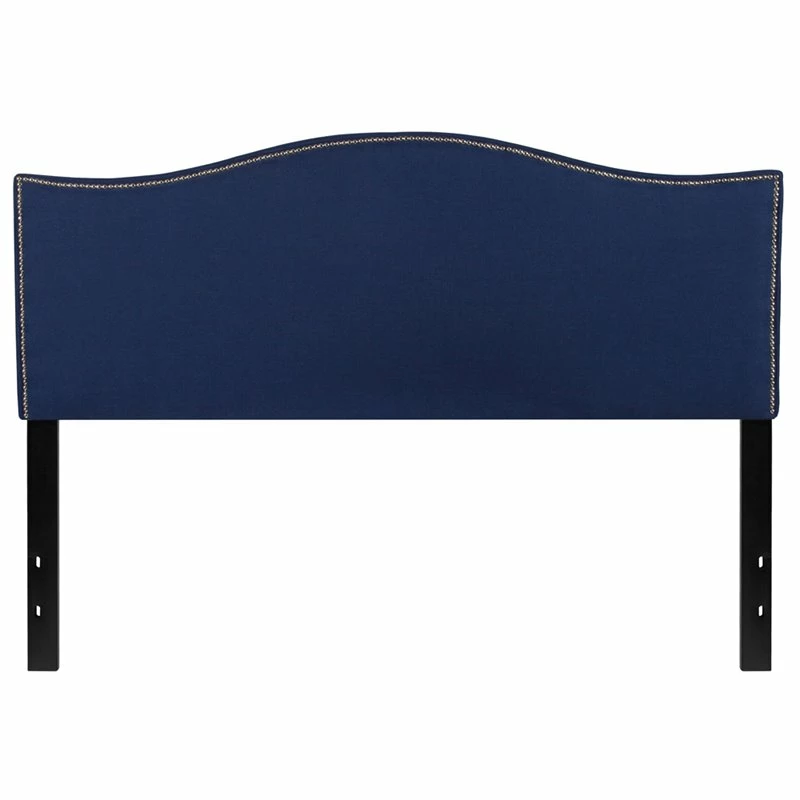 If you like reading or using your tablet or laptop in bed, you need a headboard to provide extra support. A headboard gives your room a very personal touch and allows you to show off your style. This gorgeous navy queen headboard features brass nailhead trim, fabric upholstery, and includes adjustable metal bed rail slots. The slim panel will make your room feel more spacious. Having just a headboard will provide you with floor space and makes it easy to make up the bed. Whether you’re updating your master bedroom, guest room or furnishing your first apartment or home, this headboard will give a fresh, on-trend look to your space.