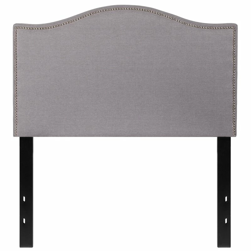 If you like reading or using your tablet or laptop in bed, you need a headboard to provide extra support. A headboard gives your room a very personal touch and allows you to show off your style. This gorgeous light gray twin headboard features brass nailhead trim, fabric upholstery, and includes adjustable metal bed rail slots. The slim panel will make your room feel more spacious. Having just a headboard will provide you with floor space and makes it easy to make up the bed. Whether you’re updating your master bedroom, guest room or furnishing your first apartment or home, this headboard will give a fresh, on-trend look to your space.