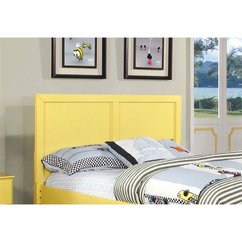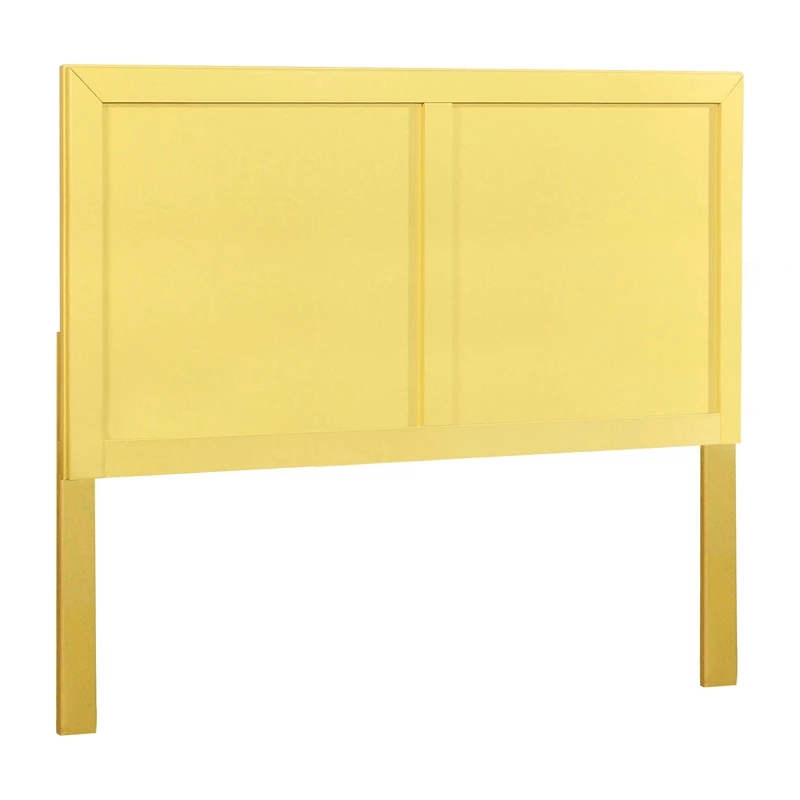 A bright Full/Queen kids panel headboard brings a spot of happiness to any child’s bedroom. This panel headboard is an easy upgrade to make your little one’s bedroom neat and tidy. With its solid wood structure, lemon yellow finish, and two legs, it’s designed to fit with an existing bed base. As a beautifully crafted kids panel headboard, you’ll love when your little one’s eyes light up at its cheerful appearance.
