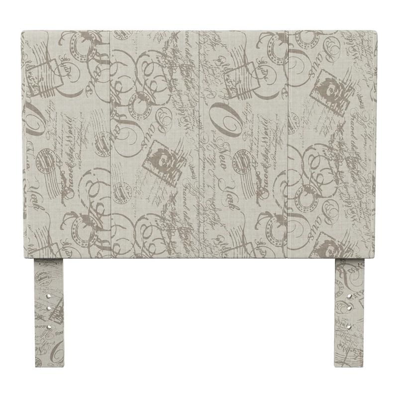 A new beige panel full/queen headboard provokes a spectacular sense of style for any bedroom. Made from solid wood and padded fabric material, this is a fabric headboard that is simplistic in design while making a statement. Intricate stitching details make this panel headboard look put together. This option is wall-mountable and constructed on top of two legs. Whether your bedroom style is lively or quaint, there is a place in your bedroom for this beige headboard.