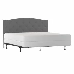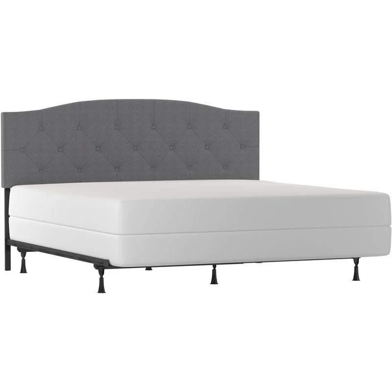 Traditional in style, this King/Cal King Headboard will bring a touch of class and sophistication to any bedroom. The black wood finish on the legs perfectly complements the gray-colored fabric. The true elegance can be found in the tufting as the arched diamond design is soft and pleasing to the eye. Box spring and mattress required; not included. Assembly required