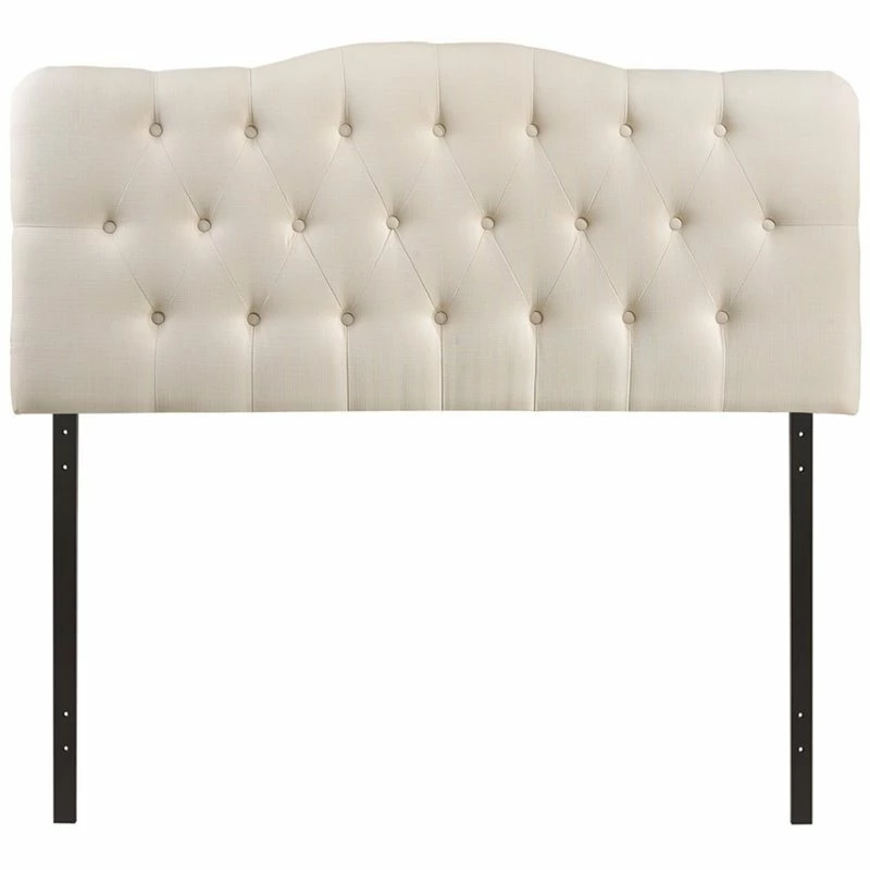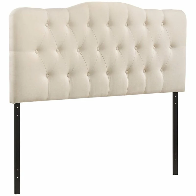Instill soft tones and a meaningful design with the Annabel tufted arch headboard. Deep inset buttons adorn this magnificent centerpiece for your bedroom decor. Annabel is made from fiberboard, plywood and fine polyester upholstering for a construction that is both lightweight and long-lasting. Carefully crafted with flowing contours and a richly rewarding design, sleep peacefully while supported by this exceptional headboard.