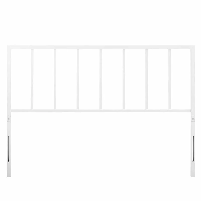 Elevate the look and feel of a teenager’s bedroom or guest bedroom with the Tatum Metal Full Headboard. Featuring a streamlined silhouette with squared lines and spindle detail, this full size headboard is a timeless design with a contemporary feel. Durable iron metal with a powder coated finish makes up the frame of this headboard for a sturdy construction that lasts. Create an aesthetic backdrop for all kinds of bedding styles with this height-adjustable headboard that’s complete with seven different mounting positions to fit most full beds. Assembly required.
