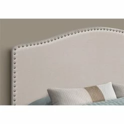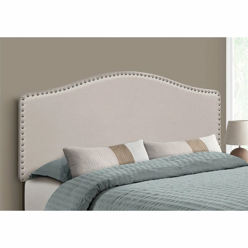Combining modern materials and a classic silhouette, this upholstered headboard panel in a beige linen-look fabric brings timeless style to any bedroom. Silver-finish nailheads create an eye-catching frame around the gently arched top and straight sides. Upholstered with extra padding and smooth-to-the-touch fabric, this headboard panel provides an ultra-soft feel for a comfortable night’s sleep. Streamlined and compact, this headboard adjusts easily to your desired height with any new or existing bed frame and is ideal for any size bedroom.