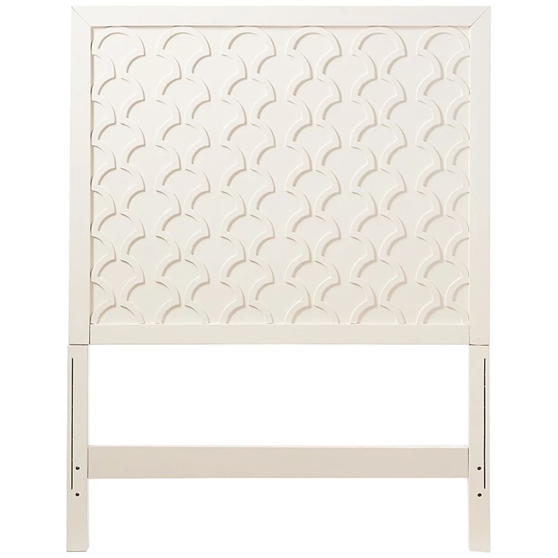 Casual cottage twin panel headboard featuring coastal shell motif.