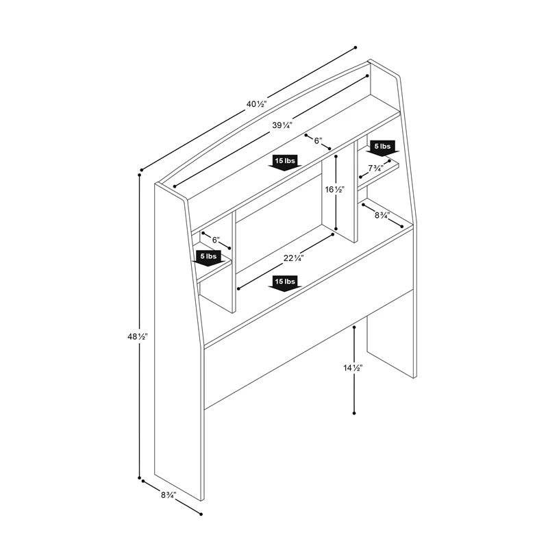 The Prepac Astrid Twin Bookcase Headboard is the ideal space saving solution for any bedroom. The Headboard is complete with 4 side compartments to showcase your favorite photos, books and knickknacks. Combine with Prepac’s matching twin storage bed, or use as a stand-alone headboard with any twin bed. Constructed from CARB-2 compliant, laminated composite woods with a sturdy MDF backer. Ships Ready to Assemble, includes an instruction booklet for easy assembly.