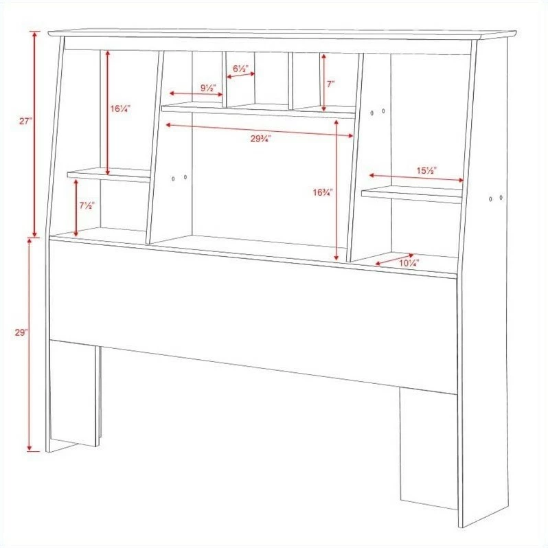 These functional Slant-Back storage headboards offer a stylish way to stay organized. They’re not only ideal for smaller rooms where finding storage space is difficult, but are a stylish addition to any bedroom. The slant-back design is unique and offers a look that will fit with most décor designs. The 8 differently sized organizing compartments provide lots of space for storing knick-knacks and personal items. Use with Prepac’s Storage Beds or with any bed frame. These products are made from composite woods with overlay laminate and the top has detailed, profiled MDF edges.