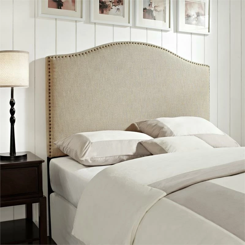 This dreamy Linen Full/Queen Headboard is all about understated elegance. The headboard features a soft beige fabric for modern charm. The gently sloping shape offers a soothing silhouette for the bedroom creating peaceful relaxation, while light padding ensures comfortable support.