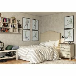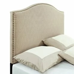 Be the first to review “Outlet โ๏ธ PRI Camelback Nailhead Trim Queen Fabric Upholstered Panel Headboard In Linen Beige โ” Cancel reply