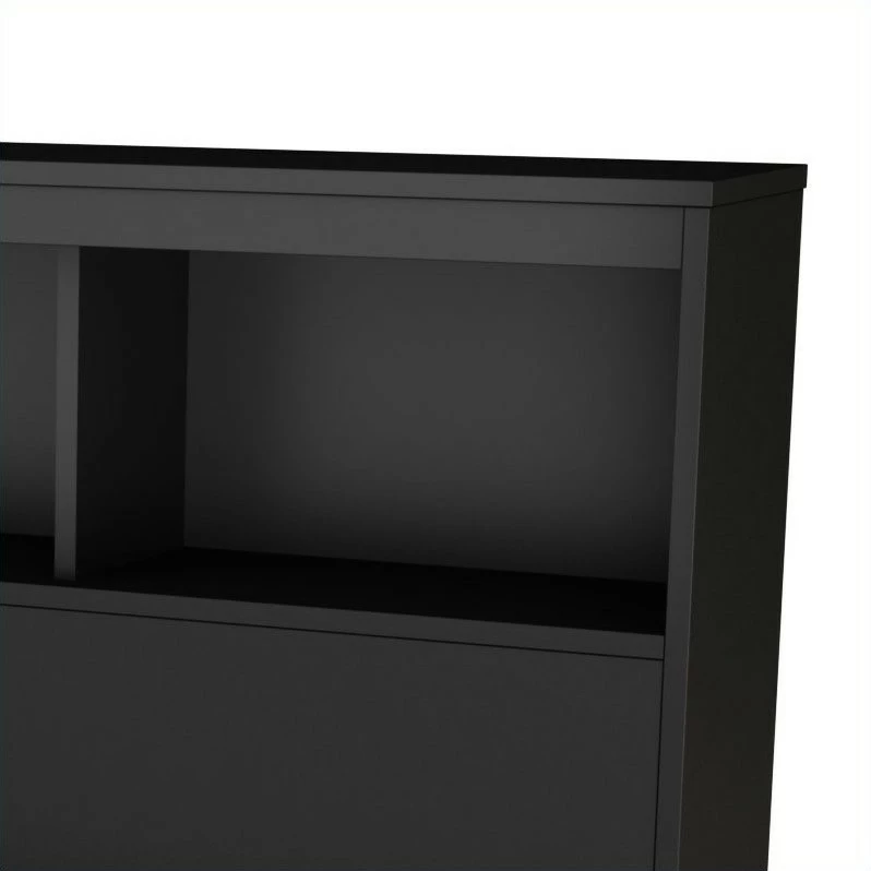 With its solid black finish and sleek, simple lines, the South Shore Affinato Bookcase Headboard will enhance any kids bedroom. Available in Full size, this headboard features three open shelves and a wire management hole in the back. Add contemporary charm to your kid’s bedroom with the Affinato Bookcase Headboard.