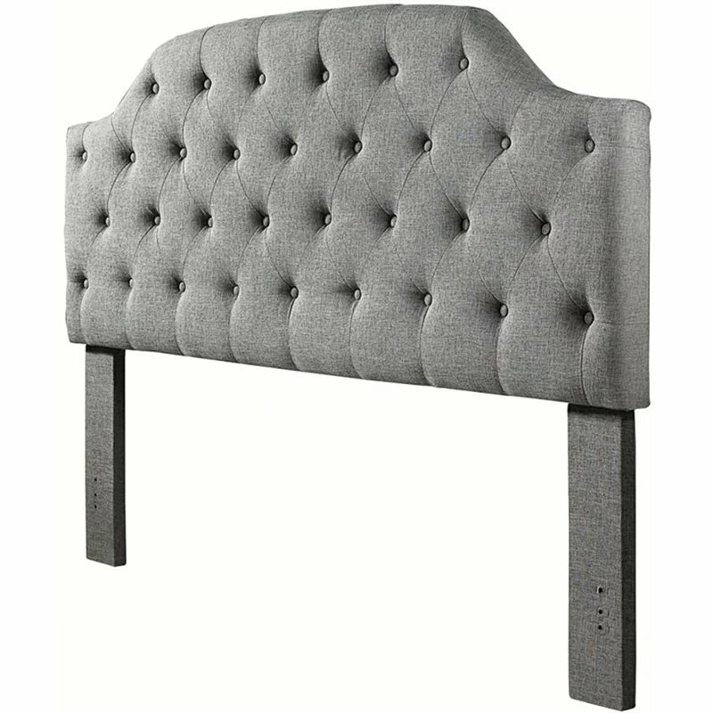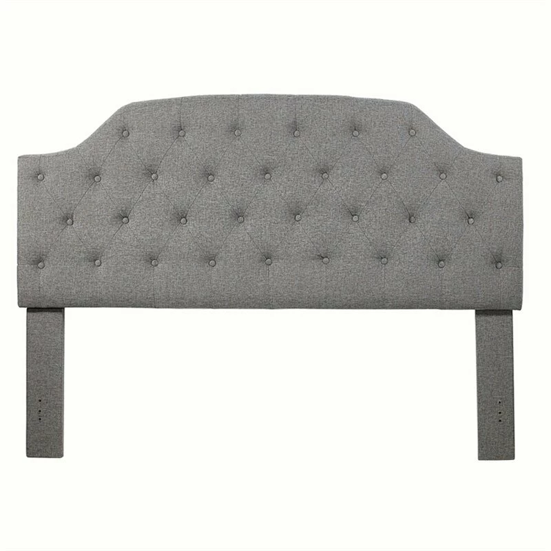 Elegant curvy lines to this slate linen upholstered diamond button tufted plush King headboard add modern design to your bedroom. Carefully crafted with a well-constructed solid wood frame for a strong, durable contemporary exceptional headboard. Fabric covered legs and back panel