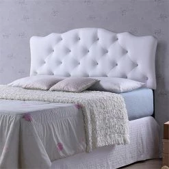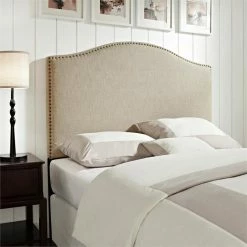 Discount 🔔 PRI Camelback Nailhead Trim King Cal King Upholstered Panel Headboard In Linen Beige ⭐